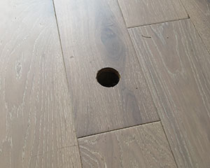 Can a hole or dent be repaired in solid or engineered hardwood flooring?